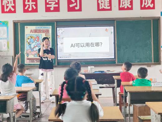 生物拓展课上,孩子们顺着生命诞生的脉络探讨“先有鸡还是先有蛋”;“神奇的泡泡”课上,五彩斑斓的泡泡裹着笑声升空,仿佛要把大山里的梦想捎向远方;“神奇的紫甘蓝”课堂更像一场魔术秀,孩子们用寻常食材调制指示剂,看紫甘蓝汁液在不同试剂中幻出红、绿、紫等色彩,就此叩开化学世界的大门。人工智能课上,孩子们第一次与AI对话,看着屏幕里自己的梦想被具象成视频画面时,孩子们眼中溢出了期待。