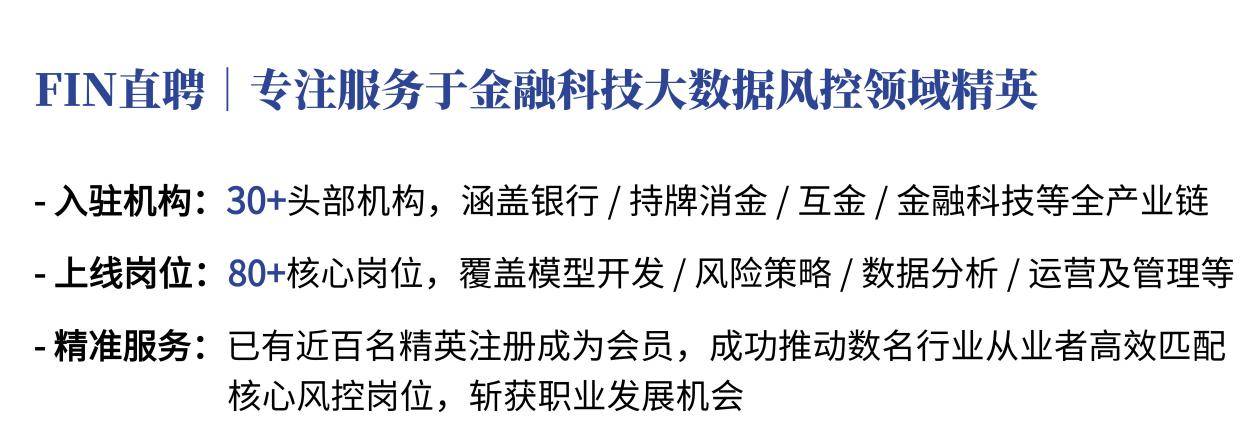 加入FIN直聘,即可查看招聘信息,可从【融慧风控讲堂】官网进入,也可关注【融慧风控讲堂精选】公众号,点击菜单栏【找工作】,获取全部机构和岗位信息。