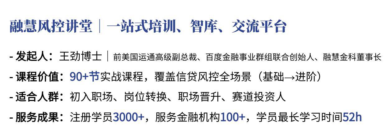 更多专业风控课程、行业价值报告及行业新闻资讯,请登陆【融慧风控讲堂】官网查看学习。