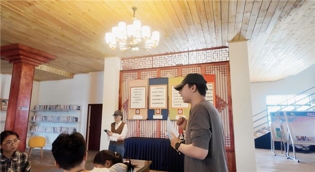 图为“栉风沐雨,筑梦红原”实践队队长孙梁天笑为学生讲授课程)