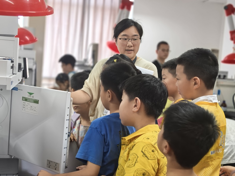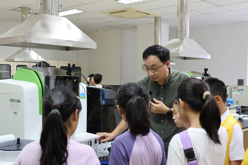 其中来自香园社区的居民尚海涛是农科院的农学专家,当天他化身为孩子们的“科学引路人”,带领他们依次走进ICPMS室、液相色谱串联质谱仪室、农残前处理室、恒温恒湿室、理化实验室等专业实验室。在ICPMS室里,农药登记实验室主任付岩为大家介绍道:“这台‘神器’能检测出土壤、蔬菜里的微量元素,帮我们守护食品安全!”