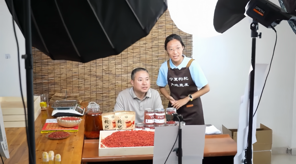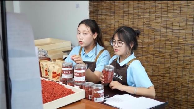 普通话教学的成果,很快在直播带货中得到检验。镜头前,队员们纷纷上阵,化身 “青春主播团”,用流利的普通话展示西吉的 “宝藏特产”:“咱家的枸杞干吃、干嚼、泡水都可以”“枸杞红,日子火,下单啦!”。
