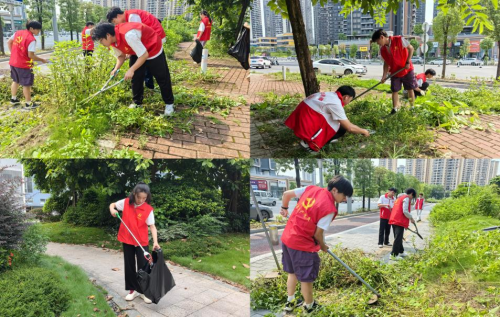 7 月 15 日,实践团首赴科教城党群服务中心周边,开展道路杂草及垃圾的清理志愿活动。炎炎烈日下,队员们分工协作,手持工具清除道路两侧杂草。额角汗珠滚落,大家却始终专注劳作,近三小时后,被杂草侵占的绿化带已整洁有序,修剪后的草丛形态规整,路面也从杂乱变得清爽,用坚持为社区环境美化注入青春力量。