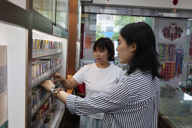 “这是防潮剂,能吸收空气水分防潮。还要保持店内通风,定期检查卷烟存放情况,避免烟受潮发霉。”零售户店里,客户经理拿出防潮剂放在卷烟货架旁,一边耐心传授技巧。