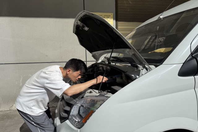 停车场里,检查小组和驾驶员一边拍照、一边记录,对每辆车开展全面“体检”:发动机功能是否正常、皮带磨损状态如何、轮胎气压够不够、刹车踏板灵敏度如何……