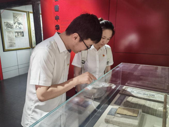 图为安吉烟草青年员工方雨东和施怡逍参观红色教育基地 陈璐摄