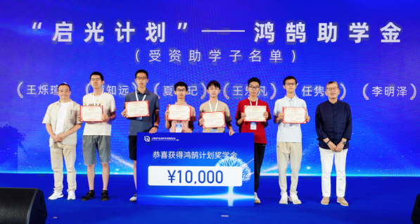 鸿鹄助学金作为启光计划的重要组成部分,旨在通过最长10年的长期资助,鼓励并支持优秀学子投身于数学、物理、计算机科学等基础学科研究,为其提供长期稳定的学习及研究环境保障。发布会现场,举行了鸿鹄助学金的首批颁发仪式。9名通过强基计划或北京大学物理卓越计划进入清华大学、北京大学并攻读数学、物理专业的优秀学子成为首批受助者。