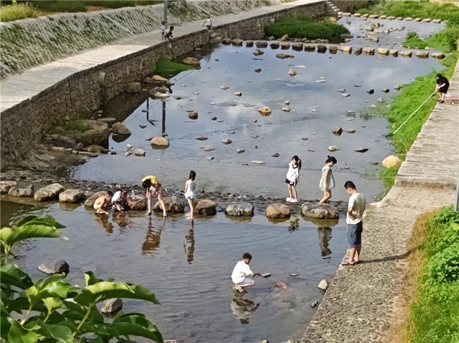 “石钟溪观光带是山都村‘水经济’的核心载体。”山都村相关负责人介绍,村里通过河道整治、景观步道建设及生态护岸修复等措施,将原本分散的自然资源串联成线,形成集亲水休闲、田园观光、文化体验于一体的3公里生态廊道,既保护了溪流生态系统,又为游客提供了亲近自然的休闲空间。