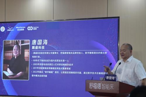 麒盛科技董事长唐国海从产业维度分享了新睡眠科技的应用。他表示,从数据产生技术收集睡眠数据,到构建睡眠疗法产业,旨在通过数字化手段为人们提供更科学、有效的睡眠改善方案,推动睡眠健康产业的升级发展。
