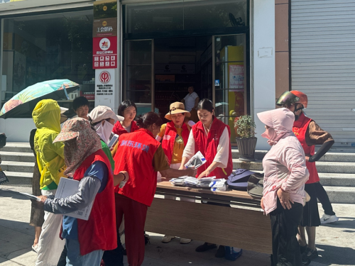 早上八点半,“香溢”志愿者们兵分两路进行准备。一组在清点即将分发给户外劳动者的防晒帽、防晒袖套、挂脖风扇等防暑降温用品。一组与当地“微动力”志愿服务队一同准备解暑伏茶。九点,“香溢”志愿者在两个站点支起了桌板,做着活动前的最后准备。