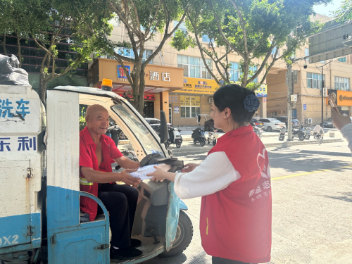 除两个户外劳动者驿站外,浙江省温州市洞头区烟草专卖局“香溢”志愿者还穿梭在洞头街头巷尾,向快递小哥、交警等户外工作者免费派发矿泉水,用小小行动为高温下辛勤工作的他们加油打气。