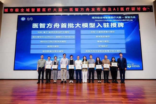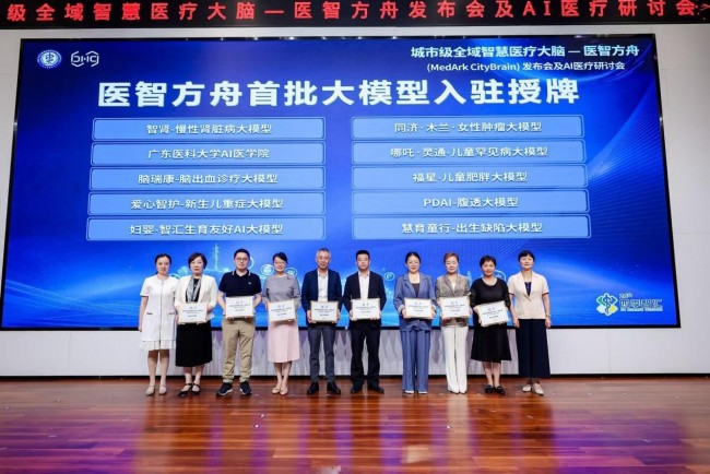 会上,全球首个融合多智能体协同机制与大模型集群能力的城市级全域智慧医疗大脑——医智方舟(MedArk CityBrain)正式发布,并为贡献首批入驻32个大模型成果的20个研发专家团队授牌。