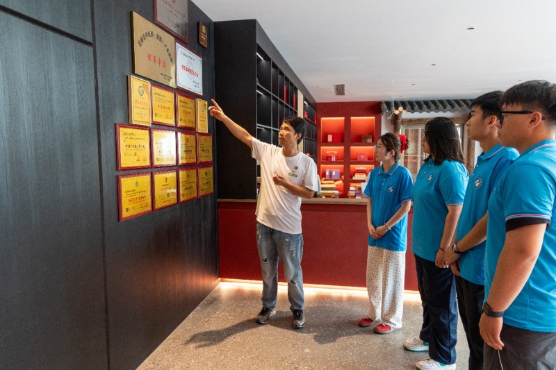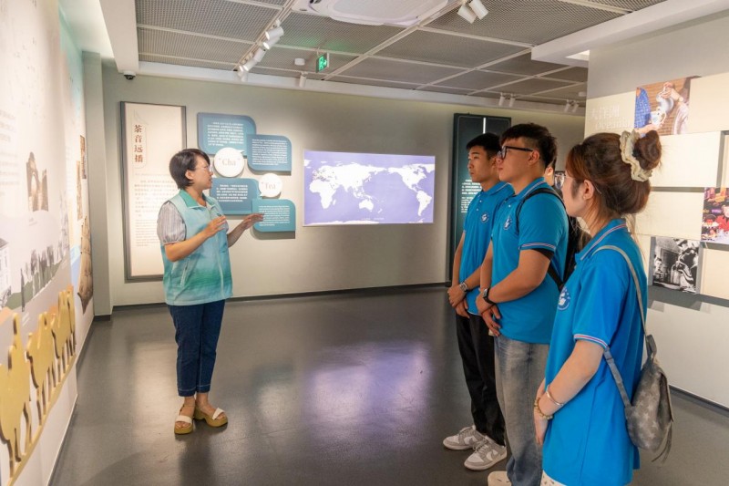 8月6日上午,实践队抵达中国茶叶博物馆,开启了一场茶文化探索之旅。在"西湖龙井茶专题展"展区,队员们通过唐代茶具、宋代点茶场景等展品,系统了解了龙井茶的发展历程。在复原的传统炒茶工坊前,队员们认真观察"抖、搭、搨、甩"等古法工序,聆听工作人员讲解"色绿、香郁、味甘、形美"品质特征的形成过程。队员陈硕浩表示:"通过这次参观,我们深刻体会到龙井茶制作技艺的匠心传承,对这项非物质文化遗产有了更深的理解。"