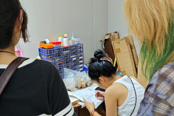 在参观过程中,团队还就“贝雕作为非遗文化如何面向青年群体传播”“工艺产品的创新尝试”等话题与讲解员进行了深入交流。部分队员抓住讲解间隙进行简短提问,讲解员也热情回应,分享了关于贝雕设计灵感、材料挑选以及文创产品转化的实践经验。这种互动式的参观体验,不仅增强了实践的沉浸感,也为团队后续的内容创作与研究积累了重要的一手资料。