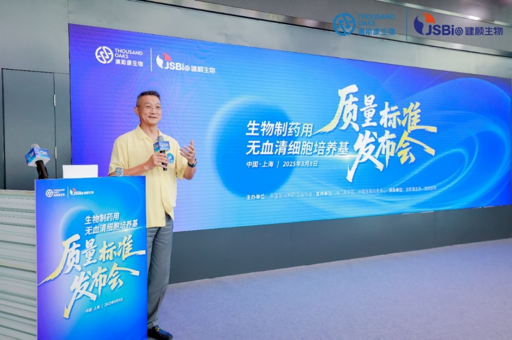 本次发布会由澳斯康生物 CEO 罗家立博士担任主持人。作为承办方代表,罗家立博士指出,无血清细胞培养基作为生物制药生产体系的核心原材料,其质量标准的统一化与规范化,是推动行业高质量发展的关键基石。
