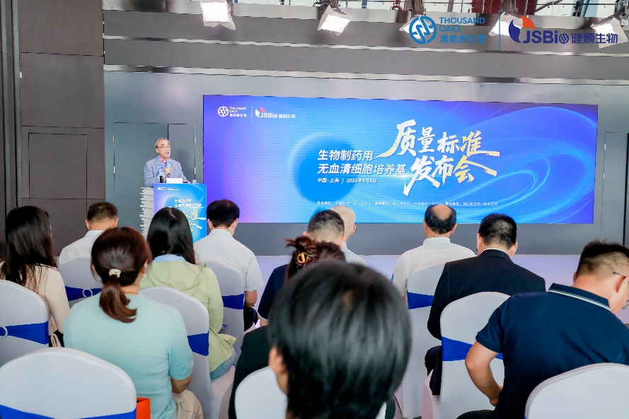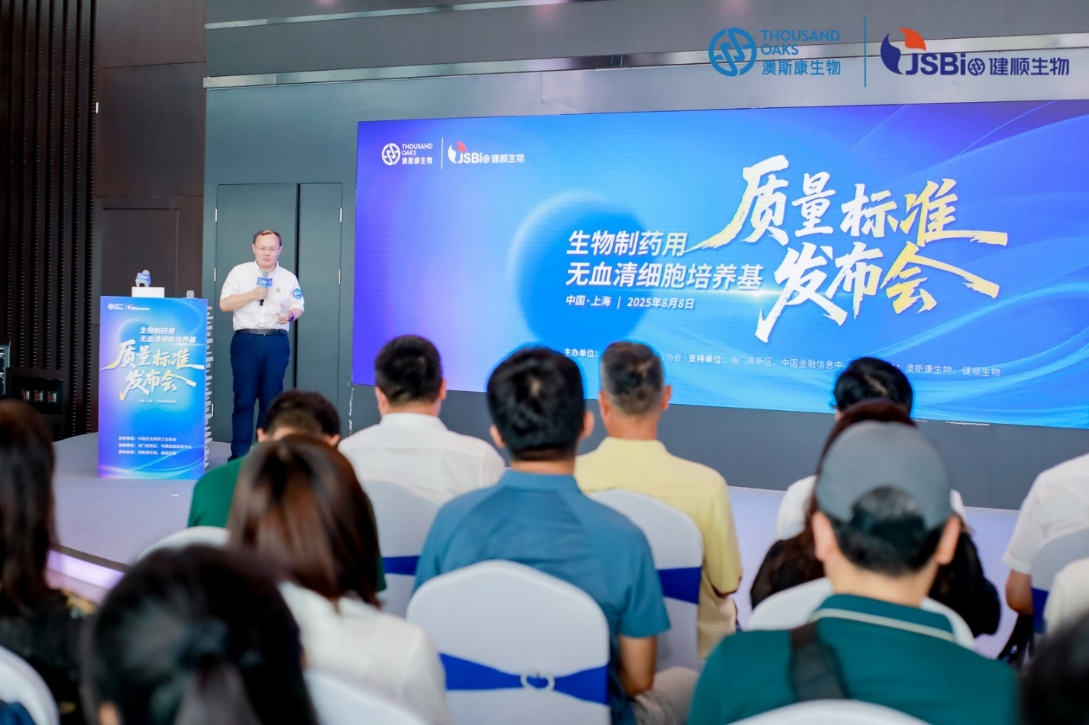 2025年8 月 8 日,《生物制药用无血清细胞培养基质量标准》发布会在上海中国金融信息中心隆重举行。此次发布会由中国生化制药工业协会主办,海门高新区、中国金融信息中心为支持单位,澳斯康生物与健顺生物为承办单位,汇聚政府领导、行业专家及企业代表,共同见证这一赋能生物制药行业规范化发展的重要时刻。