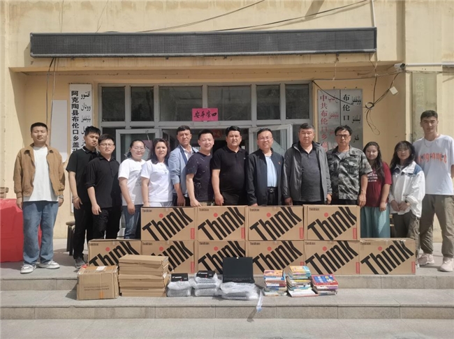 除派驻干部扎根一线外,南商中国更以实际举措为盖孜村的发展添砖加瓦。2025年8月,在了解到村委办公电脑严重短缺后,南商中国迅速行动,向盖孜村捐赠15台电脑。这批电脑不仅将改善村委办公条件,助力村务管理提质增效,更为村民获取外界信息、学习实用技术开辟了新通道,为乡村发展插上数字化的翅膀,让盖孜村在奔向共同富裕的道路上走得更稳、行得更远。