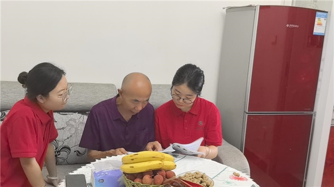 图为实践团队成员在采访人民渠修建者。卢佳琪 供图