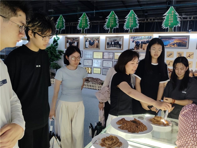 伊春森林博物馆内,丰富的展品构建起一座立体的森林百科全书。从远古树木化石到现存红松幼苗,从东北虎标本到北沉香形成原理,配合“落叶”步道与鸟鸣音效,系统展现了当地森林资源的发展历程,让实践团队深刻理解到:伊春木艺的独特魅力,源于作品中蕴含的城市与森林共生的深层密码,为后续产品制作提供灵感源泉。