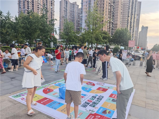 活动伊始,现场已成欢乐海洋。分类投沙包、废旧报纸变手工、垃圾分类飞行棋等趣味游戏区前,居民们排起长龙,手持分类积分卡穿梭其间,在欢声笑语中解锁环保技能。“原来碎玻璃属于可回收物,我回家要重新贴个标签。”刚在垃圾分类投沙包中胜出的王阿姨举着奖品笑道。