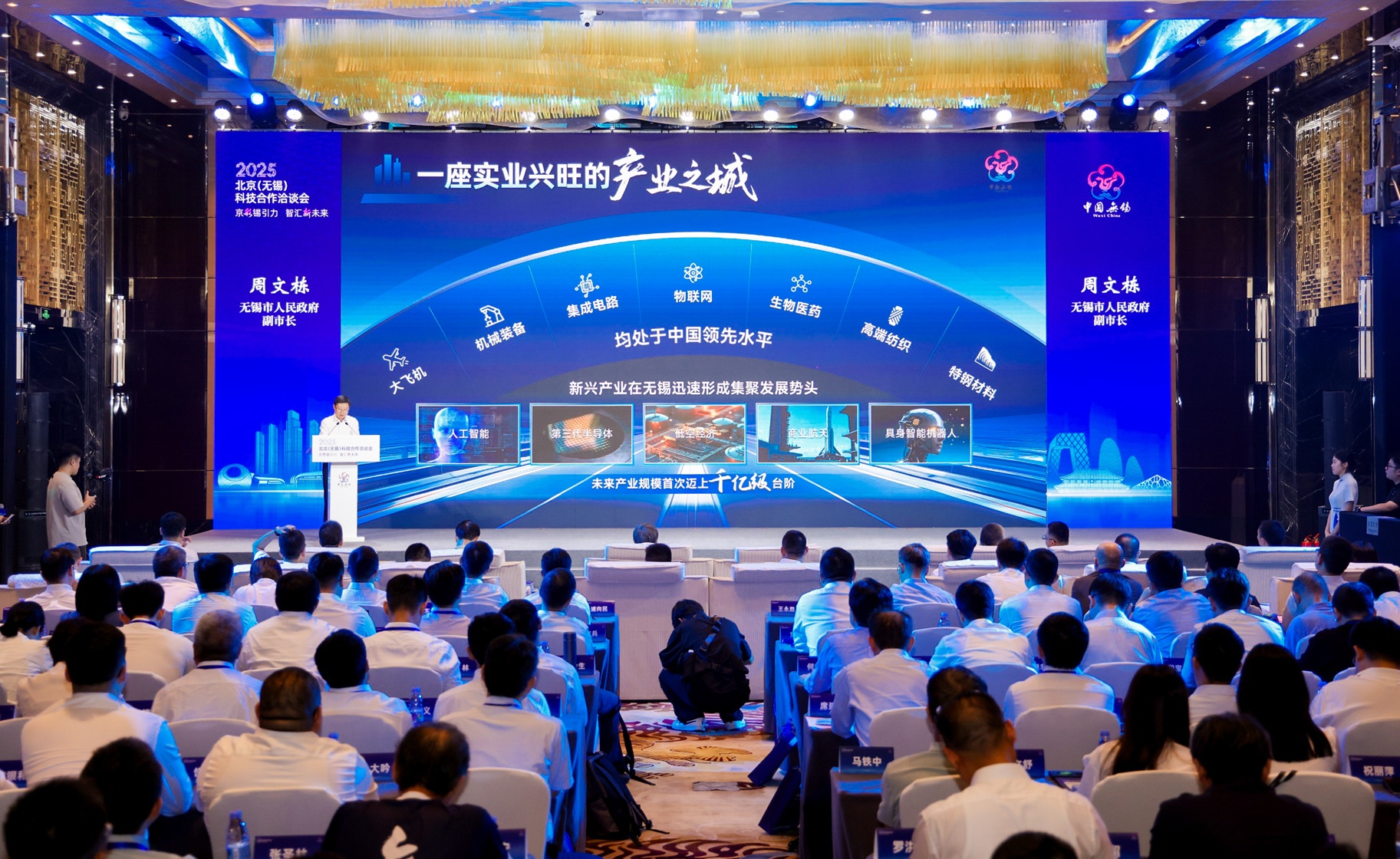 会上,无锡市政府副市长周文栋致辞,他指出,北京作为全国科技创新资源最密集的城市之一,高校院所众多、龙头强企云集、科技人才荟萃,无锡与北京,合作基础扎实、禀赋优势互补、目标愿景相契,要以本次洽谈会为契机,更好推动两地在前沿科技领域实现资源共享、优势互补,让北京的“科创智慧”与无锡的“产业实力”碰撞出更多合作火花,有力促进两地高校院所、园区载体与企业机构的协同创新、双向奔赴。