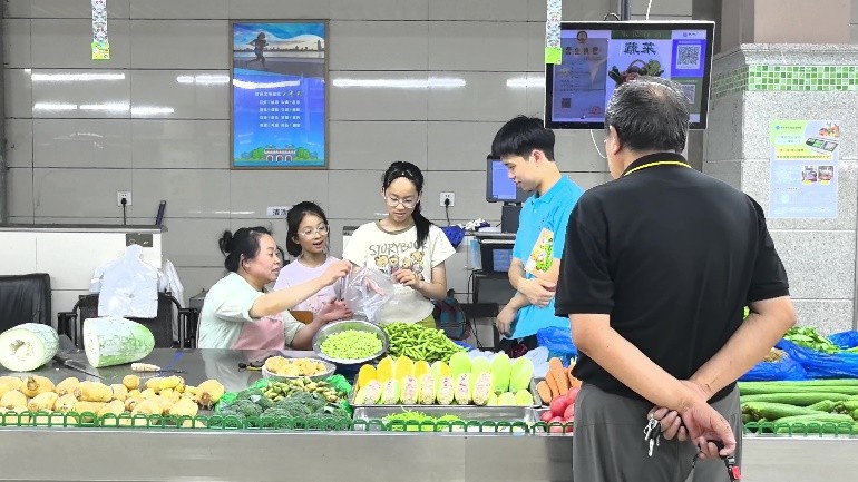 教室之外,充满活力的“菜场售卖实践课”随即展开。队员们先教孩子们如何礼貌地面对顾客、使用电子秤,再模拟应对客人“讨价还价”等场景的应对技巧。最后,孩子们走进菜摊,在菜市场摊主的配合下体验售卖蔬菜——从羞涩不敢开口到主动吆喝“快来看看新鲜的青菜哟”,孩子们在实践中理解了“一菜一饭”的来之不易,也在童心中悄然播下关注农业、热爱劳动、理解生活的种子。活动过后一位小朋友说道:“以前都是跟着妈妈买菜,没想到自己卖菜这么有意思,今天特别充实!”让孩子亲身体验大概就是最好的教育。