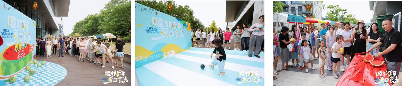 本次主题市集设置了多项互动内容:欢乐套西瓜、水果保龄球、趣味套圈、吃西瓜大赛……这些充满童趣的互动游戏,既是亲子家庭的欢乐天地,也是邻里间轻松破冰的绝佳机会!上海华府天地物业管理有限公司总经理邵光鹏先生表示:“高端社区的价值不仅在于物理空间,更在于持续创造有温度的公共记忆。我们希望这次活动不仅是一场消暑纳凉的趣味盛宴,更是一个邻里相识、相知、相融的活力平台!我们希望通过西瓜的甘甜、水果的缤纷、手作的乐趣,拉近彼此的距离,让欢笑在社区流淌,让温情在邻里间传递,共同书写属于我们的美好夏日记忆。”