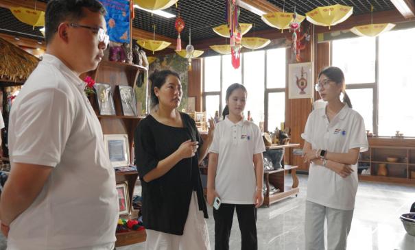 2025年7月14日,实践团走访了花间刺绣传承人,近距离观摩刺绣技艺并亲身体验,深入探寻花间刺绣的传承脉络与文化价值,挖掘其在带动地方就业、促进文旅融合、助力经济发展等方面的实践潜力,为推动非遗活态传承与地方振兴找到可行路径。