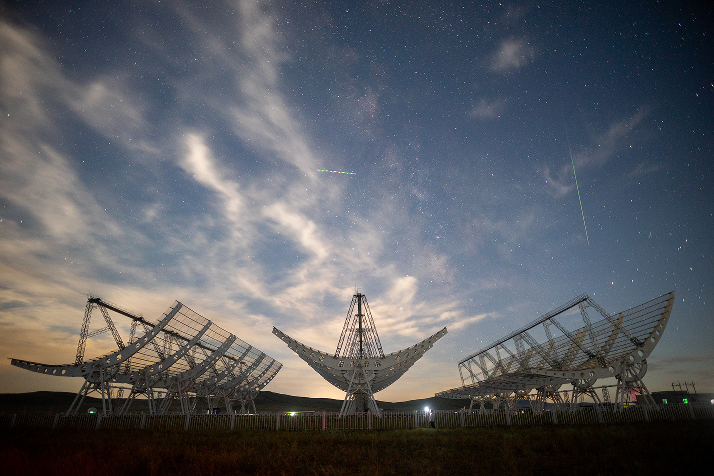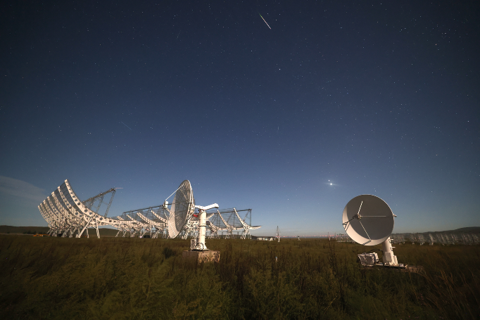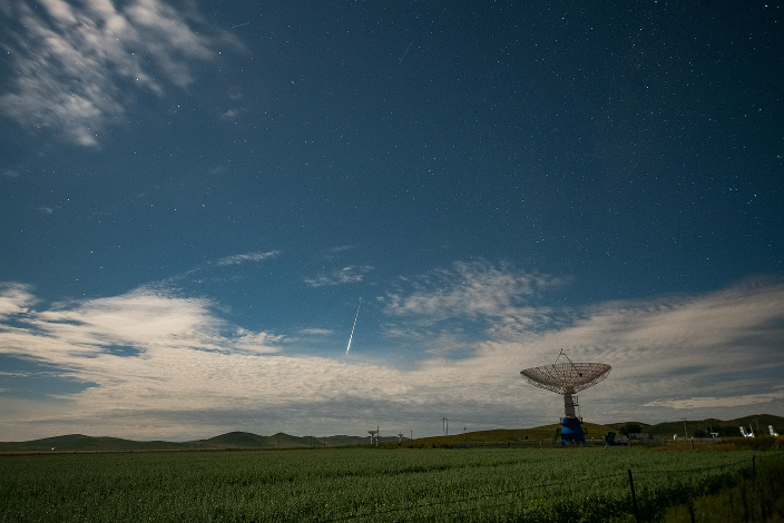 星空摄影师们以中国科学院国家天文台明安图观测基地的天线矩阵为背景创作了很多作品。他们纷纷表示,正镶白旗这边天气比较不错,虽然有云,月亮也比较亮,能观测到的流星依然很多,有的流星还有非常漂亮的绿色的尾巴。