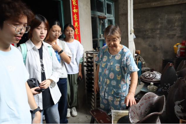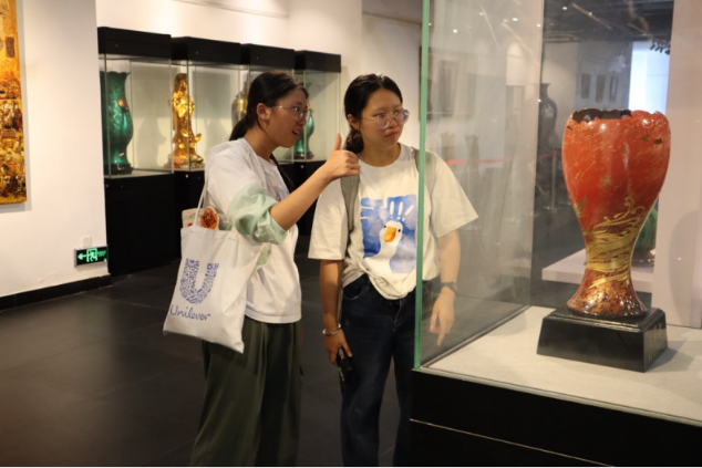 7月26日,团队又走进福州漆艺基地与沈绍安漆艺博物馆,8000年的漆史、家族的传承故事,让年轻人深刻理解“器以载道”的文化厚度。“我们希望用年轻的视角,把这些文化故事讲给更多人听。”队长张馨月说。实践团与村干部还探讨了非遗的创新路径,如社群化运营、城市展览、文创衍生品等,这些构想正在为鹅峰村的未来注入新的活力。