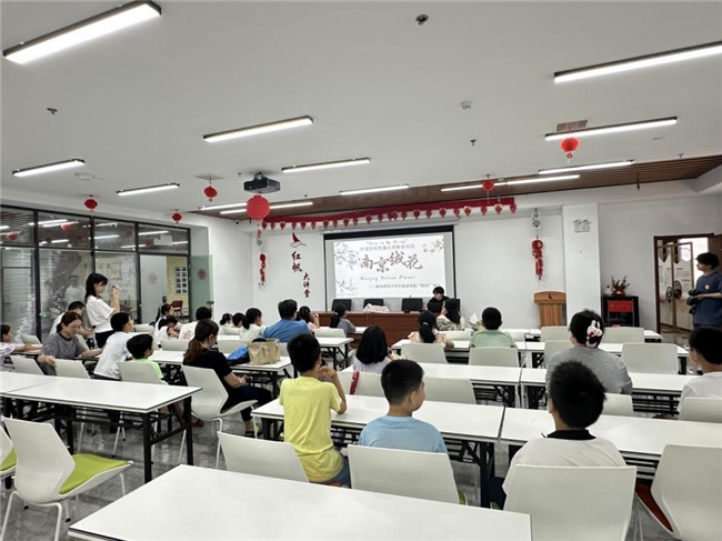 今年暑期,南京师范大学外国语学院团委与鼓楼区热河南路街道三汊河社区举行社会实践基地共建签约揭牌仪式,并在多地围绕双语非遗课堂、萌趣非遗手工、舌尖上的非遗等主题开展文化实践活动,让文化种子在孩子们心中生根发芽,成为用英语讲好中国故事的小小讲解员。