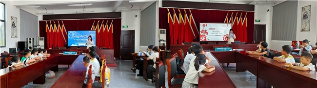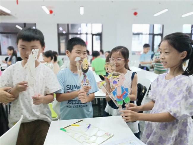 7月10日,在盐城市盐渎实验学校,团队成员聚焦省级非遗“盐城伍佑合成昌糖麻花”,将糖麻花带进课堂,带领孩子们体验舌尖上的非遗,学习用英语讲好中国故事;7月13日,团队成员在南京市栖霞区羊山湖社区将皮影艺术与古典名著碰撞,让非遗触手可及;7月17日,在扬州市江都区郭村镇未成年人保护中心,团队成员用非遗扬州剪纸为孩子们打开了一扇通往传统文化的奇妙大门;7月21日,在南通市启东市彩臣二村暑托班,团队成员让红色精神化作涓涓细流流入孩子们的心间,让中国故事薪火不断;