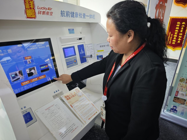 每逢暑运等运输高峰,航班量激增,陈治娟作为值班航医,每天需要保障近70组执行航班的机组成员,默默守护着航班运行的空中健康防线。她的工作贯穿机组执勤全周期:清晨首个航班出港前,需逐一完成机组的健康确认、酒精检测等环节,完成必要的航前体检,严格把关机组成员适航状态;航班运行中,通过空地联动机制实时响应机上突发医疗事件,为乘务组提供远程医疗指导;针对执行高高原等特殊航线的机组,还需开展航后健康跟踪,结合个体情况制定调理方案,助力机组快速恢复状态。