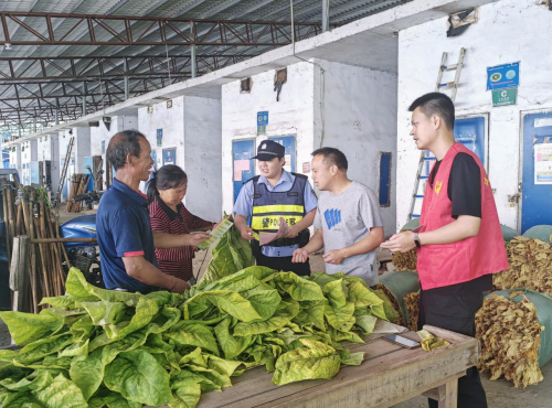 图为烟技员、属地派出所警员为农户普及安全出行常识。陈满生供图
