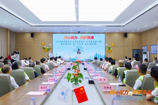 近日,2025 年全国留守儿童关爱保护 “百场宣讲进工地” 暨中央企业 “同心护未来” 活动(第 17 场)在中建四局交投公司承建的机荷高速改扩建工程第 1 合同段项目温情启幕。这场由民政部、国务院国资委、全国妇联、中国海员建设工会指导,中建集团主办,中建四局承办的活动,将关爱目光聚焦建设者子女,以实际行动为一线工友筑牢 “暖心后方”,彰显央企践行社会责任的坚实步伐。