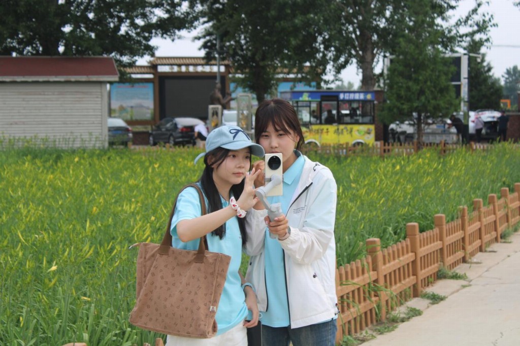 调研过程中,实践队员们手持直播云台,行走在黄花田埂与村镇街巷之间,将眼前的生机与活力实时传递——镜头里,是万亩黄花在阳光下舒展的金黄身姿,是村民们采收时洋溢的幸福笑脸。这些鲜活片段,共同拼凑出乡村振兴的立体图景,每一帧都写满“产业兴、百姓富、乡村美”的生动注脚。