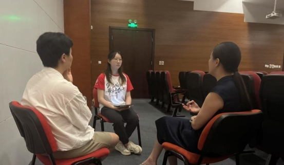 SPQ实践团成员龙柔汐与何莉丽、唐琦媛老师交流 褚语涵供图