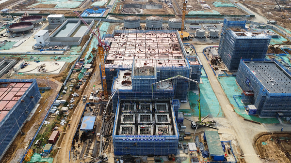 在质量管理上,首创全流程精准管控。针对反应槽这一核心设施,项目联合业主成立专项管控小组,采用飞书PTSR系统实现“6点5线1面”全维度管控:从钢筋绑扎、埋件定位到混凝土浇筑,每道工序都明确检查清单,涵盖材料进场、实体检验、试验报告等12项关键节点。通过优化混凝土配合比、创新分段养护工艺,成功控制大体积混凝土裂缝风险,实现首段658m³、二段484m³、三段398m³混凝土连续浇筑“零冷缝”,最终达成“零渗漏”验收标准,被业主授予“固若金汤、滴水不漏精品示范工程”。