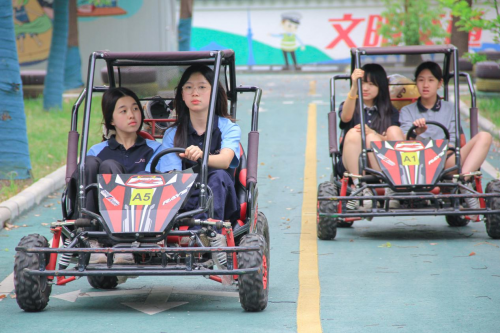 (图为学生在交通安全宣传教育基地体验开卡丁车。)