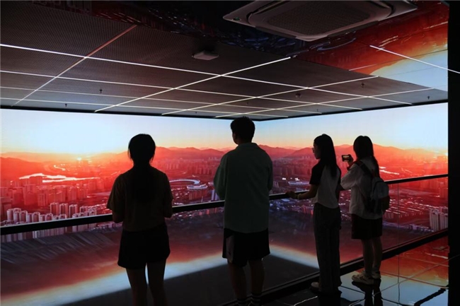 图2团队成员在乐清电子智联小镇展厅观看3D影片 高一菲 摄