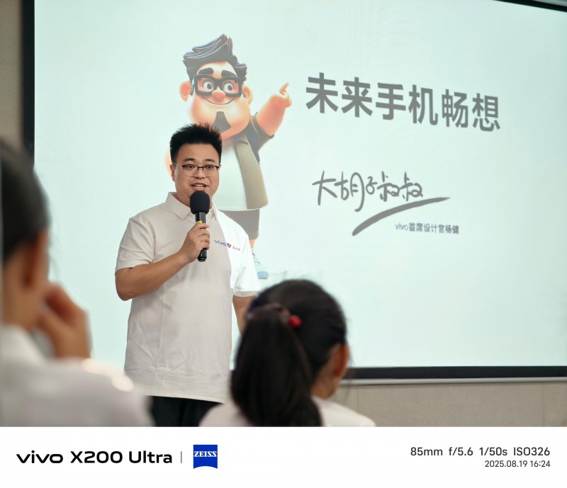 夏令营活动中,“大胡子叔叔”、vivo副总裁、首席设计官杨健带领孩子们开启“未来手机畅想”分享会。“大胡子叔叔”从自身生涯经历出发,通过生动有趣的方式向孩子讲述手机的历史,并通过手机美学设计、工艺等讲解,为孩子们科普手机是如何设计出来的。同时,“大胡子叔叔”进一步结合手机里的AI内容,包括vivo AI消除、vivo听说、vivo看见等功能,让孩子们在“感受美”的中更深度地体会vivo的互动与设计理念,以设计之美启迪孩子们对未来手机的想象。分享会后,杨健与孩子们共同畅想未来,在象征希望的“未来之树”上写下本次夏令营的所观所感,并许下“十年之约”。vivo将持续以科技之力点亮乡村儿童未来,与孩子们共同见证科技与人文共生的新世界。