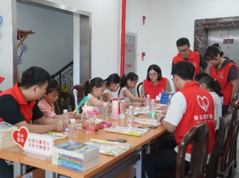 图为户外劳动者子女非遗手工扇制作活动现场