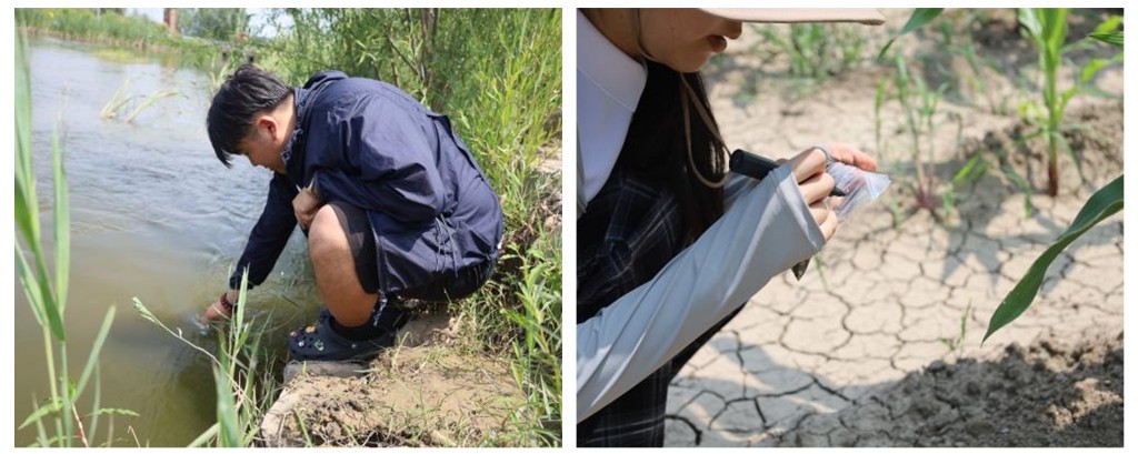 实践团将环境类专业的所学知识付诸行动,沿桑干河吉家庄乡段开展了系统生态调研。实践团成员魏靖宸和严思介绍:“此次采集的水样和土样将送往实验室进行水质pH、重金属含量及土壤有机质、氮磷钾等指标检测,详实的监测数据不仅能为当地农业种植结构优化提供科学依据,更能为桑干河流域生态保护、农田污染防治等治理工作提供参考。”