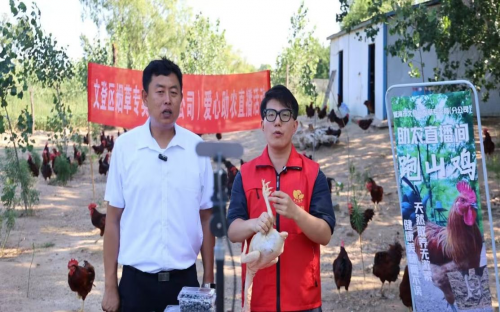 图为:文登烟草志愿者进行公益爱心直播助农活动