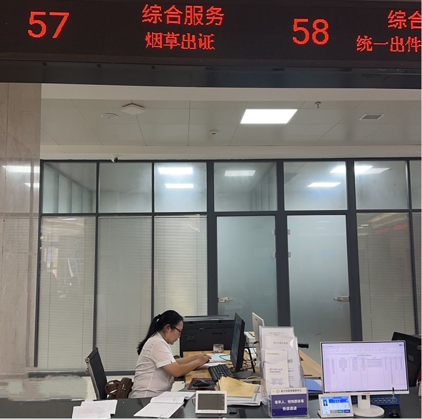 针对以往群众办理烟草行政许可存在的“哪里办”“怎么办”“找谁办”痛点难点,武穴烟草主动对接市政数局,将原先分散的许可事项全面整合,整体入驻政务服务大厅,设立专门的“服务综合烟草出证窗口”,实现“前台综合受理,后台分类审批,统一窗口出件”的闭环管理。