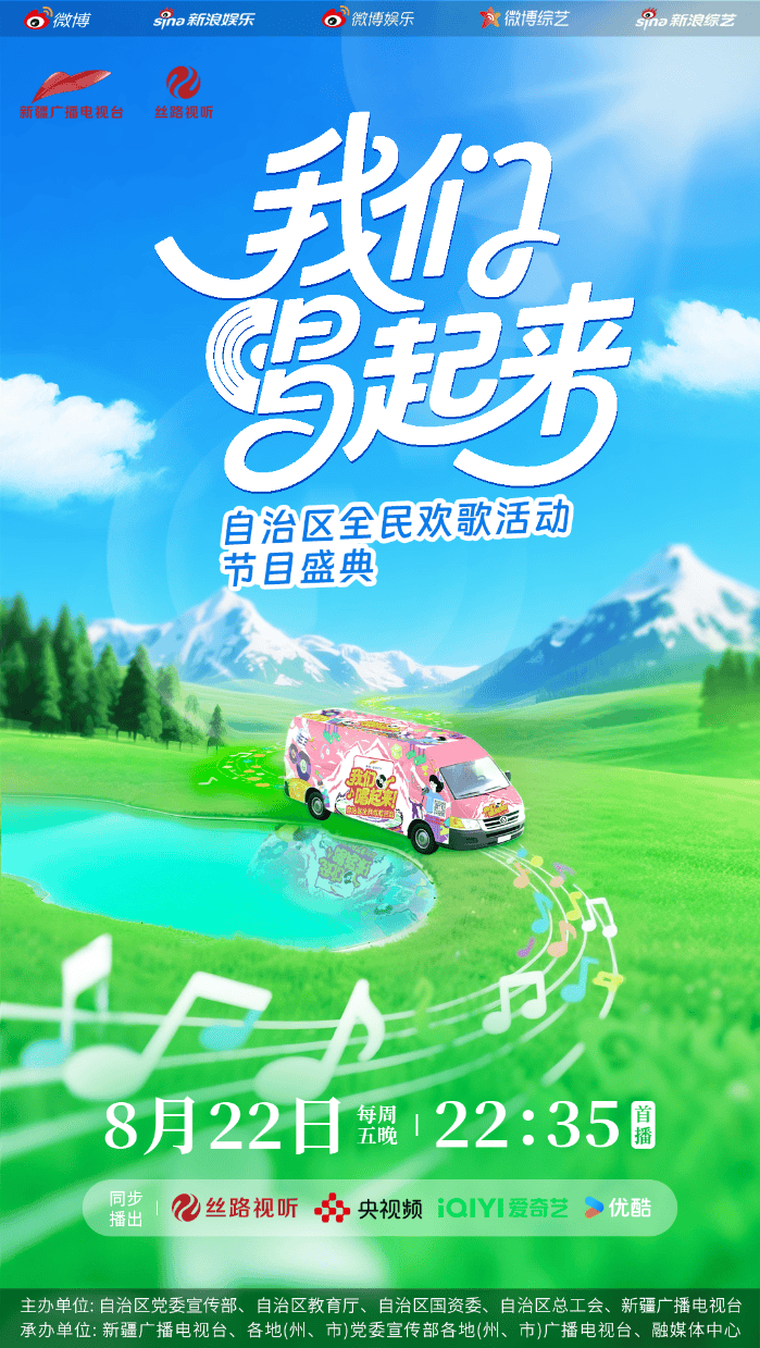 8月22日晚,新疆广播电视台自治区全民欢歌活动节目盛典《我们唱起来》正式开播。这档由自治区党委宣传部、自治区教育厅、自治区国资委、自治区总工会、新疆广播电视台联合打造的节目,以音乐为线,串联起一场历时三月、跨越万里的“音乐大篷车”全民欢唱海选之旅,最终四十位来自天山南北的民间歌者登上舞台,用歌声献礼新疆维吾尔自治区成立70周年。