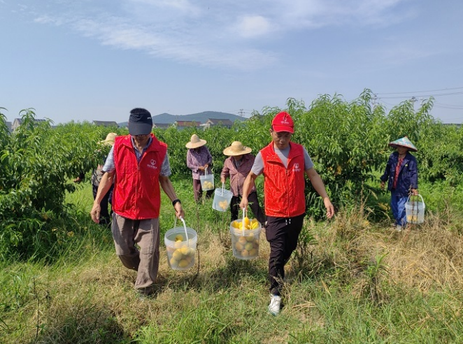 图为“香溢”志愿服务小分队赴黄桃种植地开展黄桃采摘助农活动