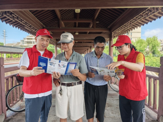 图为“香溢”志愿者现场为中老年人宣传反诈技巧