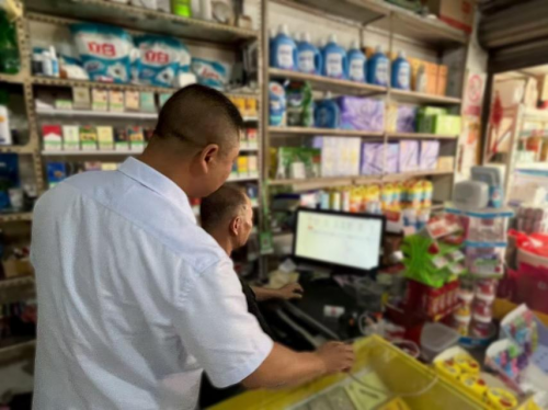 孔湾镇的老年零售店主占近三成,不少人对着智能手机犯怵。客户经理琢磨出“银龄服务三件套”:手绘订货流程图上,“点这里”“输密码”的字样被红笔圈得醒目;定制的语音闹钟按订货周期设置,连方言版提示都录好了;每月一次的“一对一”复训更细致,连指纹付款时手指该按多紧,都要握着老人的手试几遍。