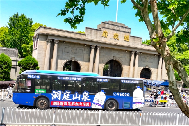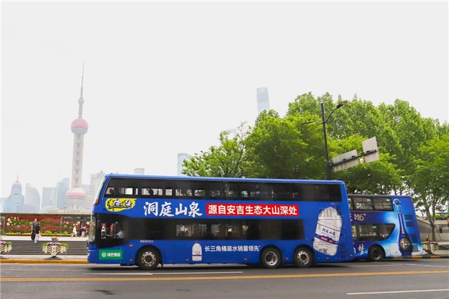 2025年,洞庭山泉在上海、南京、嘉兴、湖州、镇江、宜兴、溧阳等多个长三角核心城市开展了全媒体广告投放,利用不同媒体对品牌进行重复性曝光,实现了城市核心区域的全覆盖。从通勤路上的公交、地铁,到办公楼宇与社区入口,再到商超购物场景,消费者几乎随处可见洞庭山泉的身影。这种“全方位”的传播布局,让洞庭山泉从高频露出到深度记忆,逐步构建起消费者心中的“天然健康饮水符号”。